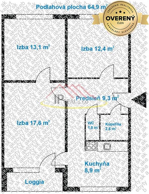 | Celková rozloha | 64.9 m² |