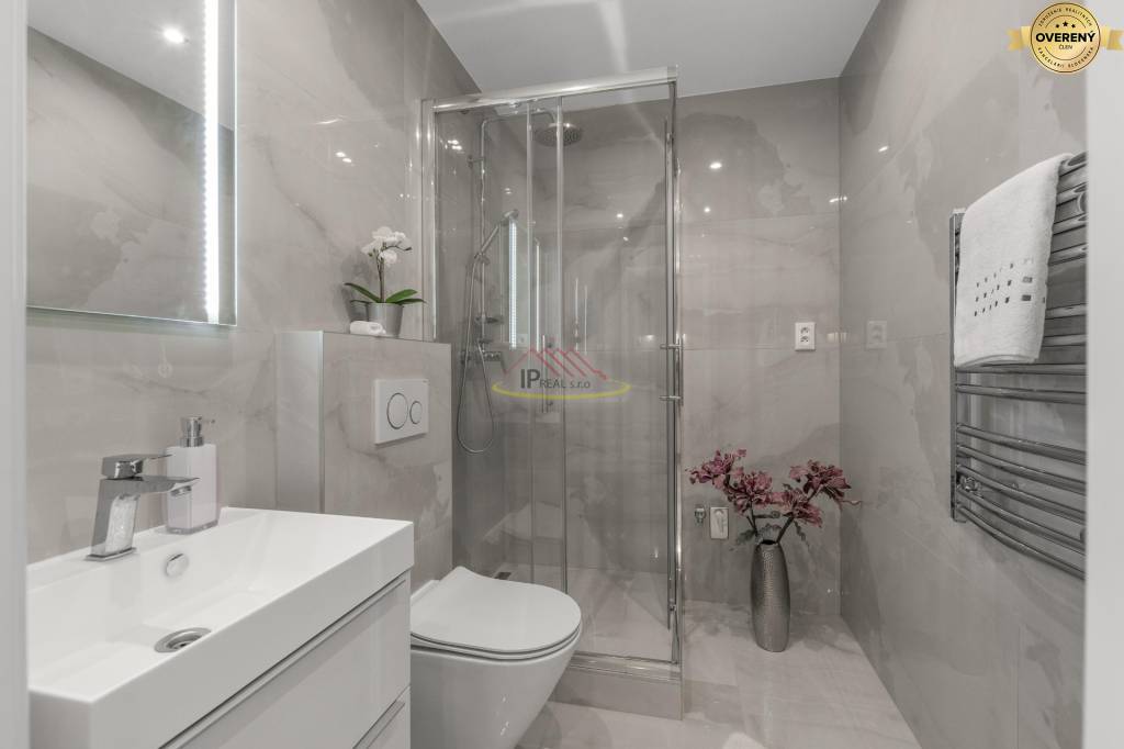 - v kúpeľni nová dlažba, moderné obklady, vaňa a batéria so sprchovacím setom značky GROHE,