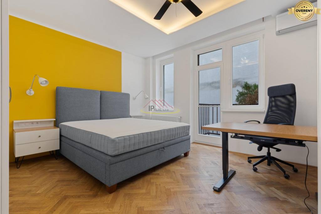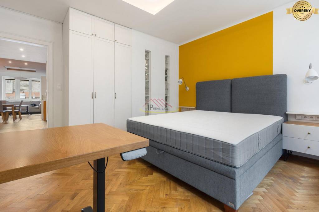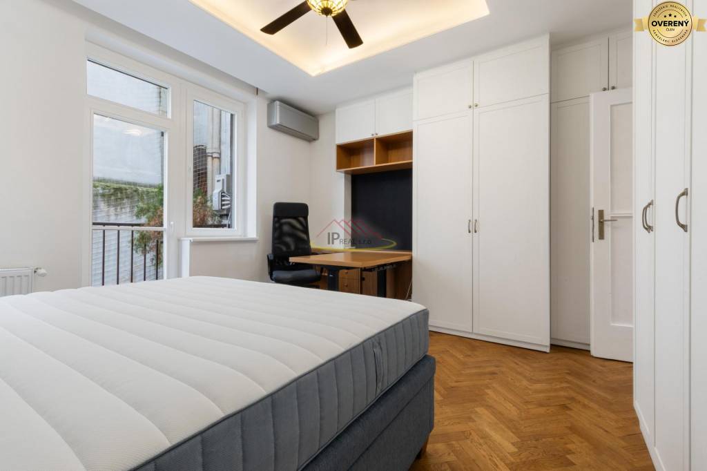 Vchodovými dverami sa vstupuje sa do otvoreného priestoru, ktoré dvorí chodba, kuchyňa, jedáleň a obývačka. Okrem obývačky sú v byte samostatné, priestranné izby, obe s úložnými priestorom. V byte je aj samostatný šatník . Kúpeľňa je vybavená vaňou, sprchovým kútom, umývadlom, práčkou a sušičkou. V oboch izbách sú umiestené dvojlôžka, v hlavnej spálni je aj veľký, pracovný stôl. Nakoľko v byte sú dve klimatizačné jednotky, počas letných dní sa nemusíte obávať nepríjemných horúčav . V prípade potreby majiteľ je ochotný podľa dohody nábytok doplniť. Na poschodí sú 3 byty. Bytový dom je tichý so slušnými susedmi. Byt je vhodný pre pár, rodinu či kolegov, ktorí budú každý užívať veľkú izbu a zdieľať kuchyňu, obývačku a ostatné príslušenstvo. V byte je francúzsky balkón. Voľný dlhodobo ihneď.