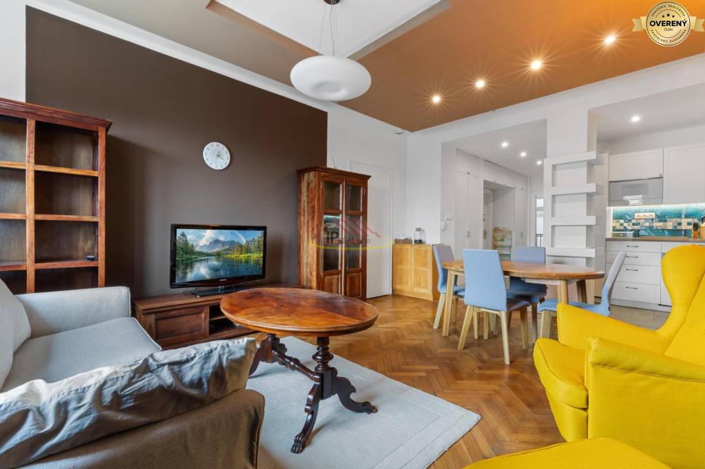 Prenajmeme kompletne prerobený, priestranný 3i byt, ( výmera bytu je 85m2 ) nachádzajúci sa pri Hviezdoslavovom námestí , na Strakovej ulici. Byt je situovaný na 4 podlaží s výťahom. Je orientovaný na 2 strany, pričom obývačka spojená s kuchyňou a detská izba sú otočené do Strakovej s pôsobivým výhľadom na kostol Sv. Martina a bratislavský hrad, spálňa je do tichého dvora. Byt je kompletne zariadený - kuchynská linka vybavená spotrebičmi ( vrátane umývačky riadu , TV ), samostatný šatník, kúpeľňa so sprchovacím kútom aj s vaňou, práčka, sušička, samostatné WC. Byt prešiel celkovou rekonštrukciou, má nové obklady, podlahy, dlažby, stierky, centrálne kúrenie.